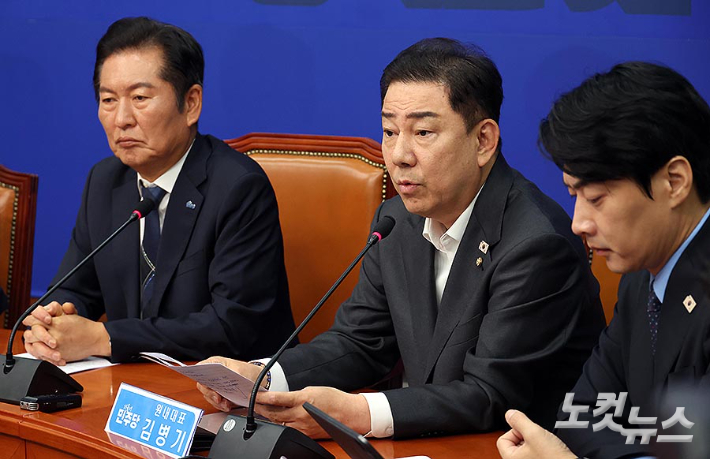 더불어민주당 정청래 대표가 6일 오전 국회에서 열린 최고위원회의에 참석해 모두발언 하고 있다. 정 대표는 "국민의 우려가 큰 것으로 알고 있다" 며 "탈당으로 징계할 수 없는 상황이 되었지만 징계를 회피할 목적으로 탈당하는 경우 제명에 해당하는 징계처분을 결정할 수 있다는 등의 당규 등을 근거로 제명 조치한다"고 밝혔다. 이어 "추후 이런 일 발생하지 않도록 소속 국회의원 기강을 확실하게 잡겠다"고 말했다.