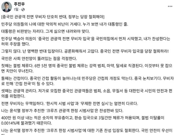 핵심요약이재명 정부가 한시적으로 시행 중인 '중국인 단체 관광객 무비자 입국' 정책을 둘러싸고 정치권의 공방이 거세지고 있습니다. 국민의힘이 연일 안보 우려와 불법 체류 가능성을 제기하며 비판의 목소리를 높이자, 더불어민주당은 "해당 정책의 발단은 윤석열 정부 시절부터"라고 응수했는데요. 윤석열 정부 당시에는 아무런 문제 제기를 하지 않던 국민의힘이 정권 교체 이후 돌연 '반중', '혐중' 프레임을 들고 현 정부를 공격하는 상황은 앞뒤가 맞지 않는다는 지적도 나오고 있습니다. 이에 노컷뉴스는 해당 정책의 출발부터 시행, 논란을 언론 보도 중심으로 간략히 정리했습니다.