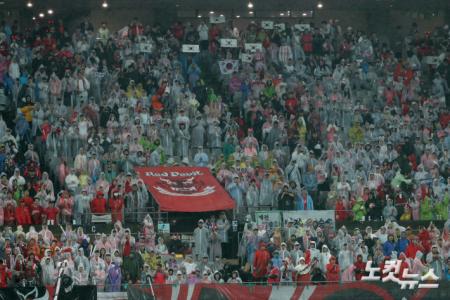 10일 서울월드컵경기장에서 열린 축구 국가대표팀 친선경기 대한민국과 브라질의 경기를 찾은 관중들이 응원을 하고 있다.