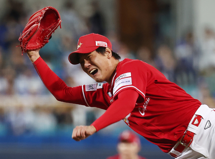 SSG 37살 베테랑 좌완 김광현도 혼신의 역투를 펼쳤다. 김광현은 1회 올 시즌 개인 최고인 시속 149.6km를 찍는 등 5회까지 5탈삼진 1피안타 3볼넷 1실점으로 제 역할을 해냈다.