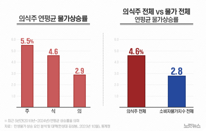 소비자물가 2.8% 오르는 동안 의식주 물가 4.6% 올라