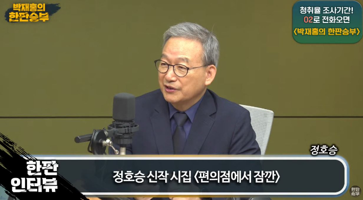◇ 박재홍> CBS 라디오 박재홍의 한판승부 2부 문을 열었습니다. 2부에서는요, 특별한 분과 함께 또 특별한 시를 나누는 시간을 갖겠습니다. 슬픔이 기쁨에게, 수선화에게, 붙이지 않은 편지 아시죠? 너무나 많은 사랑을 받은 시들인데 우리 정호승 시인님과 함께하겠습니다. 어서 오십시오.