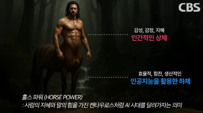 ◇ 김현정> 진짜 해몽이 너무 좋아요. 말의 해, 관통하는 키워드는 홀스 파워고 반인 반마. 그러면 이걸 현대적으로 해석하자면 상체는 사람인데 하체는 AI.