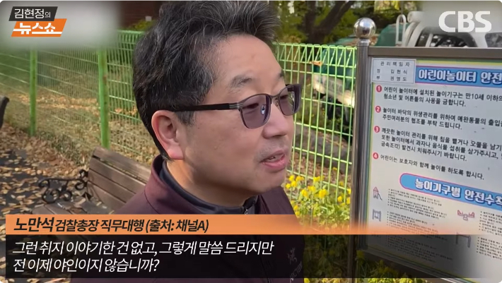 ◇ 조태임> 어제 노만석 대행, 서울 자택 앞에서 취재진에게 한 말인데 사의 표명 후 휴가를 내고 자택에 머물다 모습을 드러낸 거잖아요. 검찰 조직원들에게 하고 싶은 말 없느냐 이런 얘기도 하고 했는데 우리 검찰 잘 됐으면 좋겠다. 이런 얘기를 했고 또 지금 방금 영상에 나온 얘기는 이제 야인이지 않느냐, 야인은 야인대로 놔둬라. 이런 얘기를 했는데 이 발언 왜 가져오셨어요?