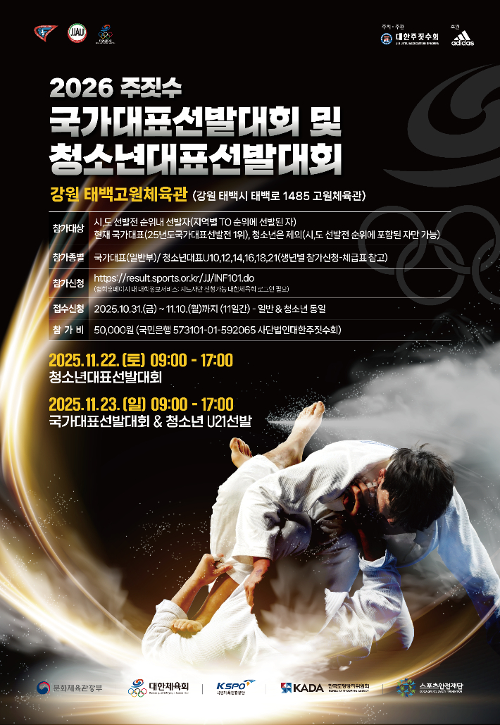 14일 대한주짓수회에 따르면 성인과 청소년 부문을 합쳐 전국 17개 시도 주짓수 대표와 현재 국가대표(성인) 선수 등 1254명이 '2026 주짓수 국가대표·청소년대표 선발대회'에 출전해 우열을 가린다.
