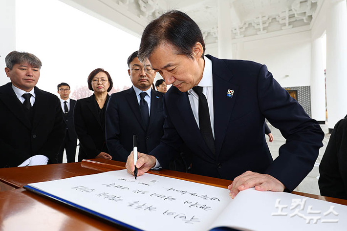 취임 후 첫 일정으로 현충원을 찾은 조 대표는 방명록에 "국민의 하루를 책임지는 정치로 행복이 권리가 되는 나라를 만들겠습니다."라고 적었다.