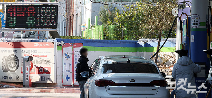 주유소 기름값 4주 연속 하락…다음주도 하락 이어질 듯 5일 서울시내 한 주유소에서 시민들이 주유를 하고 있다. 국내 기름값이 4주 연속 하락했다. 한국석유공사 유가정보시스템 오피넷에 따르면 12월 다섯째 주 (12월 28일~1월 1일) 전국 주유소 휘발유 판매가는 리터(ℓ)당 1729.9원으로 직전 주 대비 5.4원 하락했다. 경유 판매가는 리터당 1633.1원으로, 직전 주보다 8.6원 싸게 판매됐다. 황진환 기자