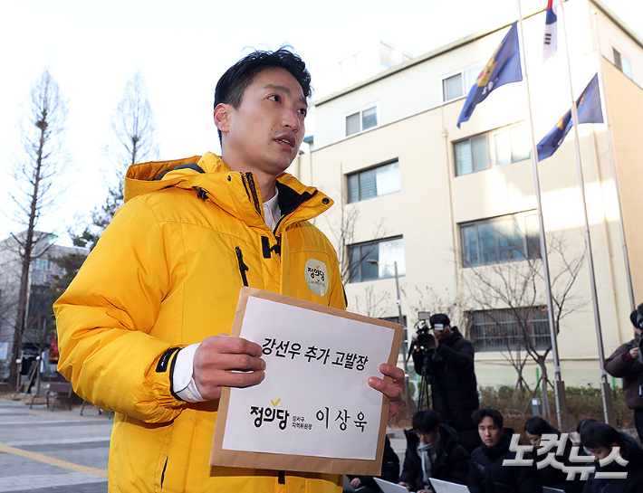 더불어민주당에서 제명된 강선우 의원의 '공천헌금' 의혹을 공직선거법 위반 혐의로 고발한 정의당 이상욱 강서구 지역위원장이 5일 고발인 조사를 받기 위해 서울 강서경찰서에 출석하고 있다. 이 위원장은 "강 의원에 대해서 불법 정치자금 수수 혐의, 배임 수재 혐의 그리고 특정범죄가중처벌법상 뇌물 수수 혐의 등에 대해 추가 고발장을 접수한다"고 밝혔다. 황진환 기자