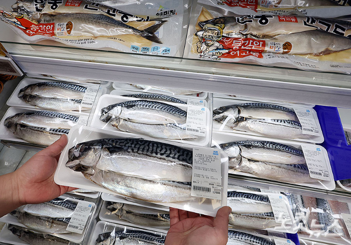 몸값 뛴 '국민생선' 고등어, 대형마트서 최대 60% 할인 8일 서울시내 한 대형마트에 고등어가 진열돼 있다. 국민 생선으로 불리는 고등어 가격이 치솟자 정부가 연초부터 비축 물량을 방출하고 대형마트를 통해 최대 60% 할인행사에 나서기로 했다. 해양수산부는 '대한민국 수산대전-고등어 특별 할인전'을 8일부터 25일 까지 진행한다. 이번 행사엔 이마트와 하나로마트, 롯데마트, 메가마트 등 19개 사가 참여해 오프라인으로 진행되며, 소비자는 행사 기간 한 사람에 1만 원 한도로 30~60%까지 할인된 가격에 고등어를 구매할 수 있다. 아울러 해수부는 이달부터 정부 비축 고등어 2000여 톤을 방출해 가격 안정 효과를 높이겠다고 밝혔다. 해수부에 따르면 지난달 수입산 고등어 한 손(2마리) 소매가격은 평균 1만 363원으로 한 달 전에 비해 500원 올랐고, 1년 전과 비교하면 28.8%인 2천 원이나 올랐으며 2년 전(6803원)과 비교하면 1.5배로 뛰었다. 황진환 기자