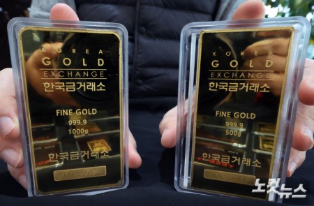 국내 금값이 사상 처음으로 ‘한 돈 100만원’ 을 넘어선 가운데 22일 서울 종로구 한국금거래소에서 관계자가 골드바를 들어보이고 있다. 한국금거래소에 따르면 전일 기준 순금 1돈(3.75g) 소비자 매입가격은 100만 9000원으로 100만원 선을 처음으로 돌파했다. 안전자산을 찾는 수요가 점점 더 강해지며 금, 은 가격이 연일 최고치를 경신하고 있다. 금값은 지난해 초 50만원대에서 출발해 불과 1년 만에 약 90% 급등했다.